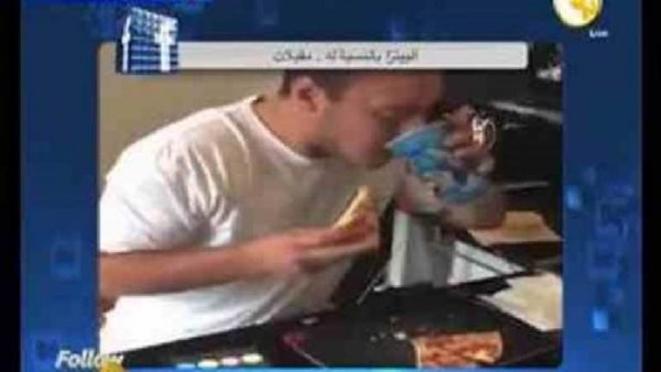 عرض برنامج "Follow_On"، المذاع عبر فضائية "on tv"، مع الإعلامي حسام الدين حسين، مقطع فيديو لشاب يأكل بيتزا كاملة في 30 ثانية.