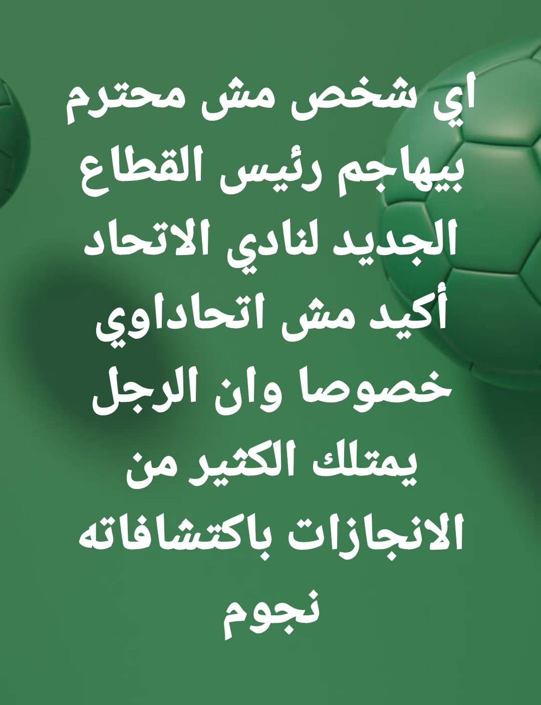 هذا وقد أكدت جماهير الإتحاد بأن هناك حمله ( لتطفيش ) رئيس القطاع الجديد مؤكدين علي تمسكهم برجل بحجم وقيمة رئيس القطاع الجديد معلقين آمالهم عليه فى نجاح تجربته السابقه داخل نادى إنبي.