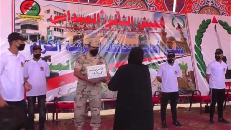 وحرصت القوات المسلحة على الإعداد والتجهيز الجيد للأصناف من خلال هيئة الإمداد والتموين للقوات المسلحة لتقديمها إلى أبناء القرى والتجمعات السكانية لتلبية إحتياجاتهم من السلع الغذائية، حيث تم توزيع الحصص بالتنسيق مع وزارة التضامن الإجتماعى لضمان وصولها إلى مستحقيها بالمحافظات التى تقع فى نطاق مسؤلية الجيوش الميدانية والمناطق العسكرية .