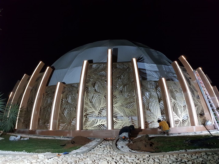 تبدو المنطقة الخضراء مثل زهرة اللوتس من الأعلى، وعبارة عن 5 مناطق عرض كبيرة تمثل بتلات الزهرة، مع ممرات مبنية من مواد مستدامة مثل الأخشاب والأقمشة التي تربط المناطق المختلفة معًا كما يتم تحفيزها من خيوط العنكبوت.