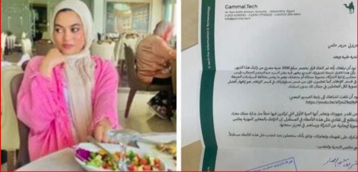 مريم حلمي صاحبة خطاب الخصم بالإسكندرية تثير الجدل.. وهذا رد الشركة