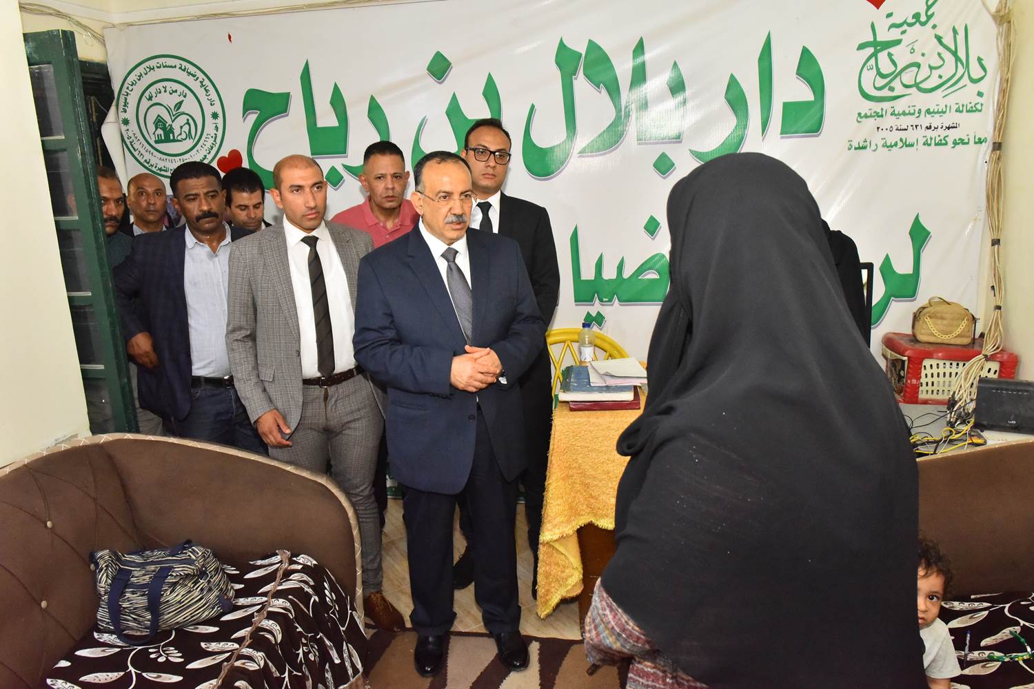 التقى المحافظ بعض الأطفال من نزلاء دار رعاية الأيتام بجمعية الشيماء، واطمأن على الرعاية المقدمة لهم. طالب بتحسين الخدمات بالتنسيق مع مديرية التضامن الاجتماعي ومؤسسات المجتمع المدني، وأمر بإنشاء صيدلية صغيرة بالدار لتلبية احتياجات النزلاء من الأدوية.