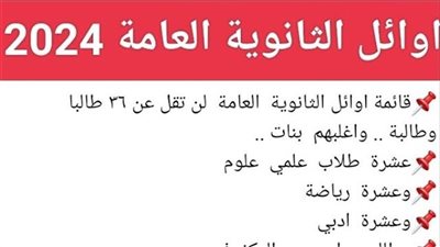 وإليكم قائمة تتضمن أسماء أوائل الثانوية العامة 2024 بعد التعديل