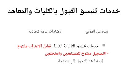 1- ادخل إلى موقع التنسيق الإلكتروني من هنا .