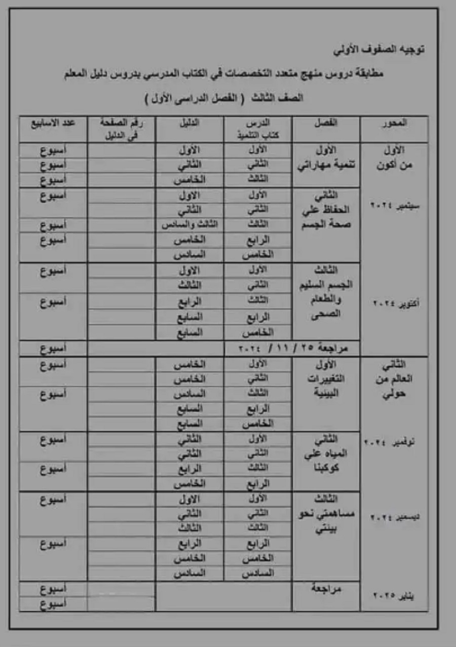 يمكنك تحميل التوزيع الكامل من موقع وزارة التربية والتعليم أو عبر الاتصال بالمدرسة للحصول على نسخة محدثة. إذا كنت بحاجة إلى تفاصيل إضافية أو نماذج، فأنا هنا للمساعدة!