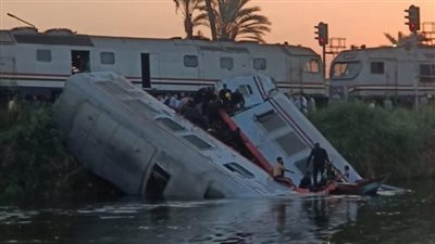 حادث تصادم قطارين بالمنيا و سقوط عربتي ركاب في ترعة الإبراهيمية