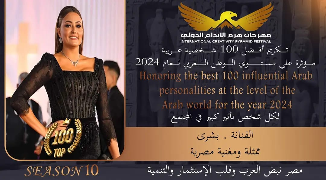 يشهد المهرجان في نسخته العاشرة تكريم مجموعة مميزة من الفنانين والإعلاميين والشخصيات العامة التي أثرت في مختلف المجالات، ومن أبرزهم الفنانة بشرى، ويأتي تكريم بشرى تقديرًا لمسيرتها المميزة التي تجمع بين الأداء الفني الراقي والمساهمة في صناعة المحتوى الإبداعي، كما يُعد هذا التكريم تأكيدًا على مكانتها البارزة في المشهد الفني العربي، ودورها في إثراء الثقافة والإبداع.