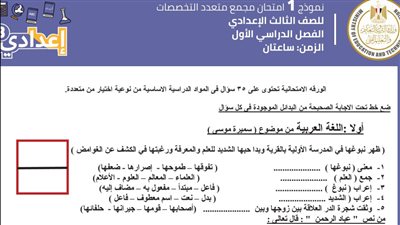 تحميل نماذج امتحانات اللغة العربية للصف الثالث الاعدادي