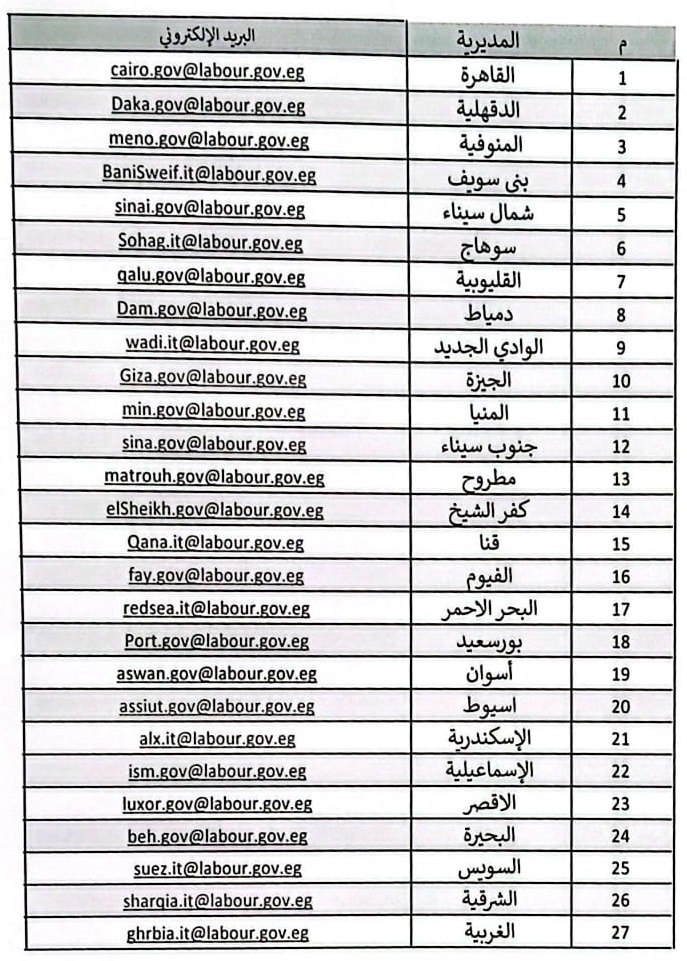 كما يتعين تضمين البيانات الأساسية مثل اسم الشركة، مقرها، رقمها التأميني، وعدد العقود المرفقة، مع تقديم ملفات PDFوExcelتتضمن أسماء العمال وأرقامهم القومية وأجورهم ومدة العقود.