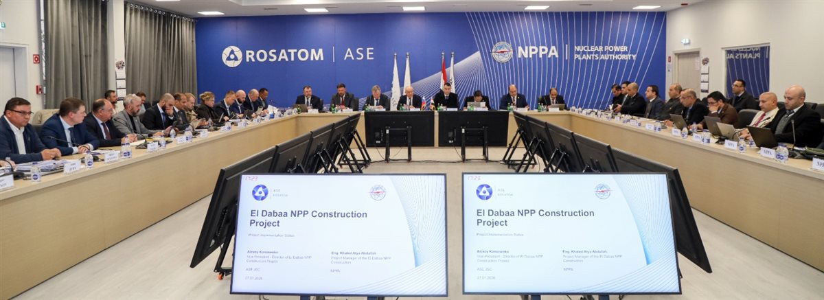 وشملت المتابعة عقد اجتماع مع أندريه بيتروف النائب الأول للمدير العام للطاقة النووية ورئيس شركة "ASE" التابعة لمؤسسة "روساتوم" الروسية، بحضور قيادات الهيئة وممثلي الجهات المعنية، حيث تم استعراض تطورات الأعمال بالمشروع، ومناقشة الموقف التنفيذي، وخطط العمل خلال المراحل المقبلة.
