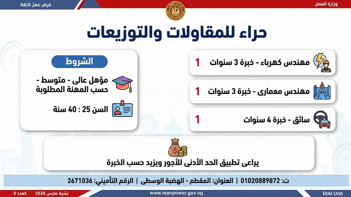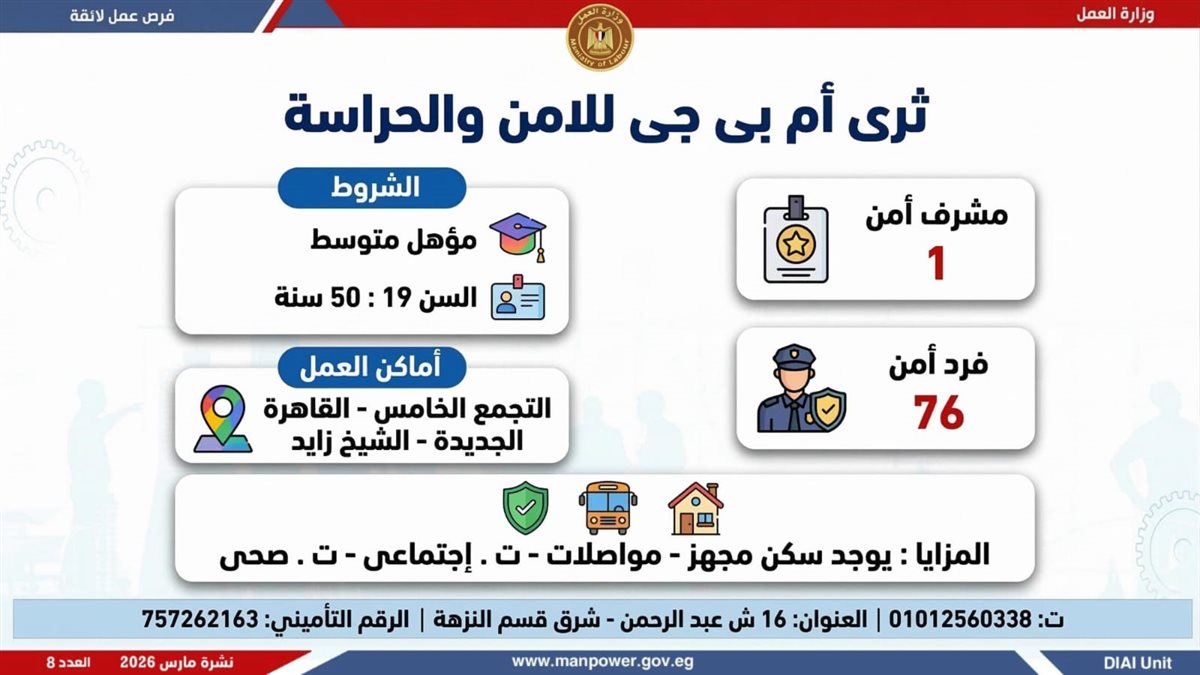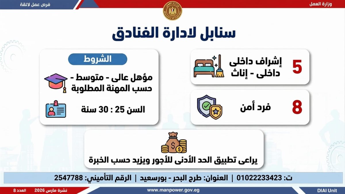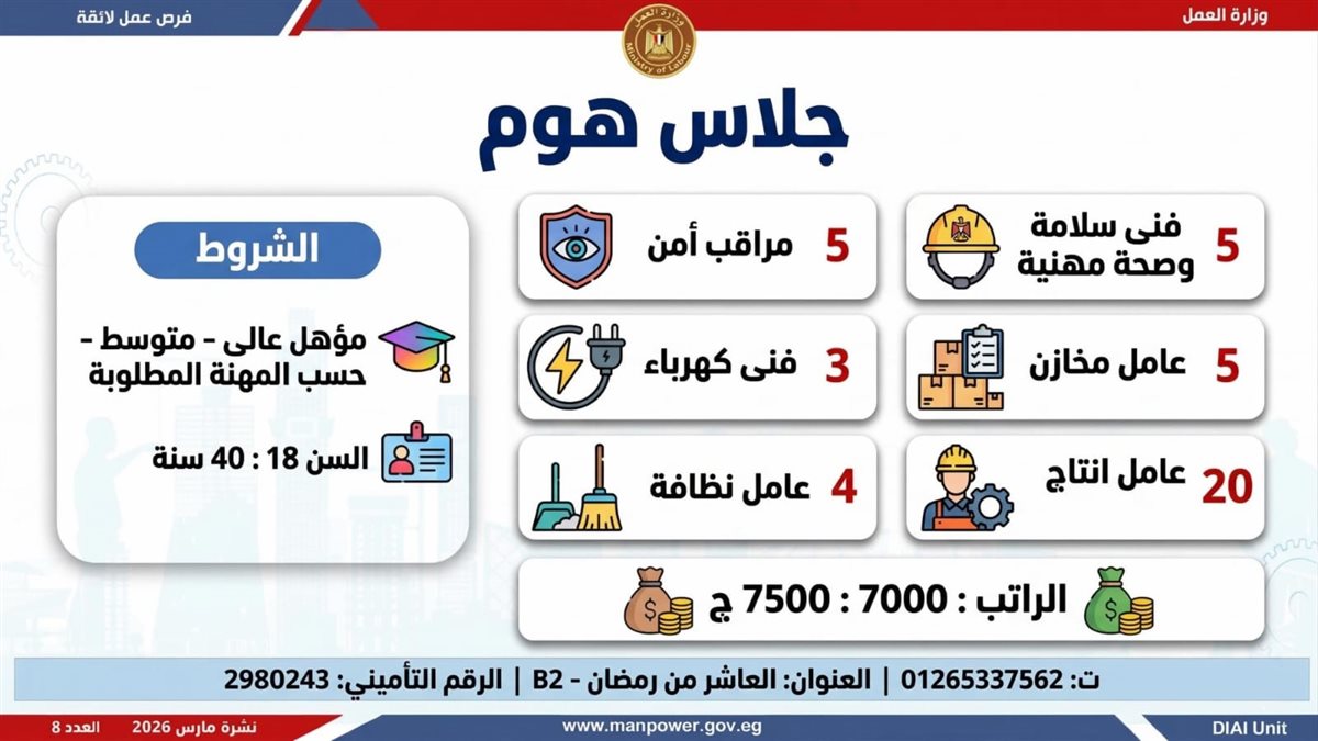 ويهدف ذلك إلى توفير بيئة عمل آمنة ومستقرة تحفظ كرامة العامل وتصون حقوقه، كما تشمل النشرة فرصًا مخصصة لذوي الهمم في إطار سياسة دمجهم في سوق العمل.
