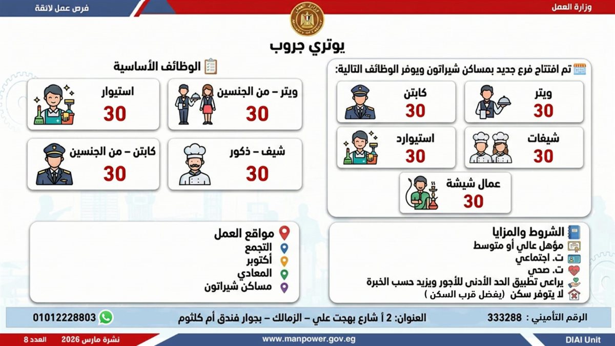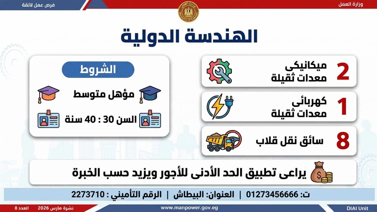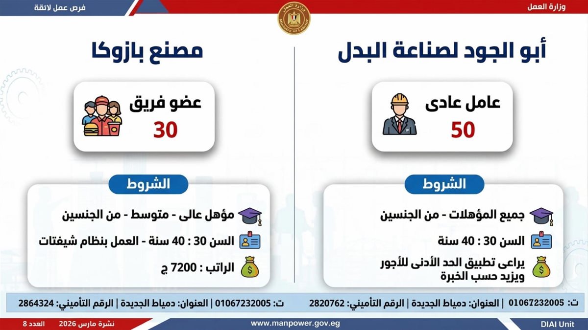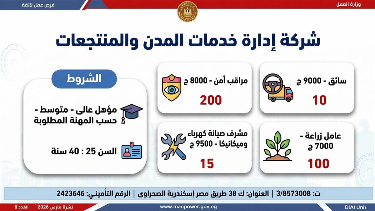 وبيّنت الوزارة في بيان لها أن النشرة تضم فرصًا متنوعة في عشرات التخصصات والمهن، برواتب مجزية تُحدد وفق طبيعة الوظيفة والمقابلة الشخصية، مع التزام كامل بتطبيق الحد الأدنى للأجور، والاستفادة من مظلة التأمينات الاجتماعية والصحية.